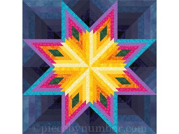 Arcturus Log Cabin Star Paper Pieced Quilt Medallion Pattern Etsy Canada